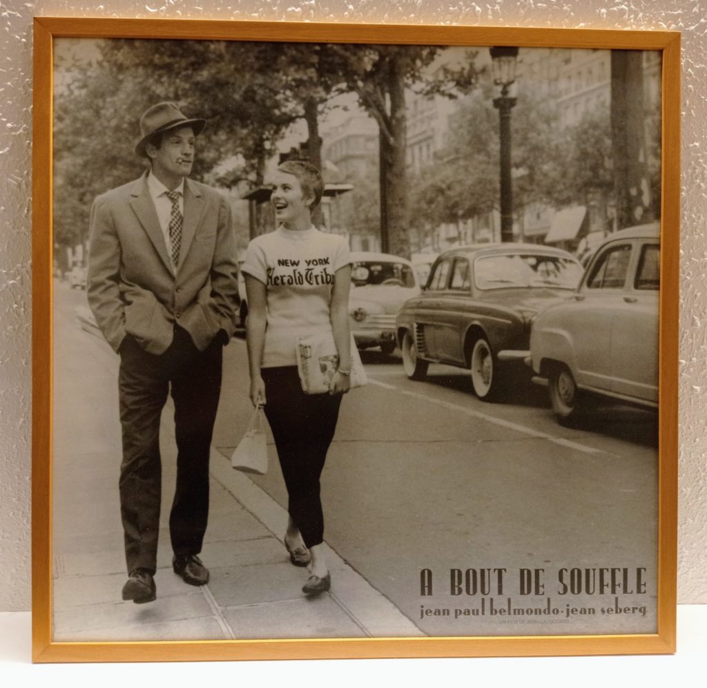 Era la primera vegada que sortia de Barcelona. 19 anys. No sabia res del món. Una mica de francès que havia après a l’escola, amb el mètode Kucera. I tot el que havia après a la pel.lícula À bout de souffle,  la pel.lícula amb què em vaig enamorar de París, dels seus cafès, dels seus Champs-Élysées, dels cabells curts de la Jean Seberg, dels seus pantalons, de la seva samarreta blanca, dels diaris que venia, del barret del Jean Paul Belmondo, de la seva americana, de la mirada d’enamorats de tots dos, de l’apartament diminut on la parella mantenia llargues converses. (Els diàlegs de les pel.lícules del Godard m’han encantat sempre!)